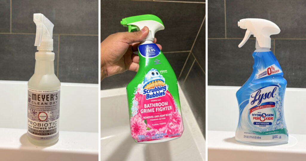 - Ingredients: Most shower cleaners fall into three buckets: synthetic, bleach- and plant-based, according to Murphy. The first two are also called traditional cleaners, and rely on synthetic ingredients to do the heavy lifting, she says. This includes “surfactants (such as sodium lauryl sulfate) to break down grime [and] solvents (like glycol ethers) to dissolve soap scum.” Traditional cleaners are less eco-friendly but much stronger than plant-based cleaners, which use surfactants derived from things like coconut oil and sugarcane, according to Murphy. Plant-based cleaners are gentler and safer than traditional cleaners, but may require more effort to do the same job. To align with Murphy’s guidance, I included cleaners that use synthetic and plant-based ingredients, and a couple that have bleach.