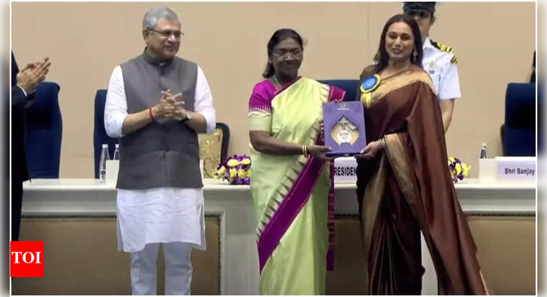 Rani Mukerji was the center of attention at the 71st National Film Awards, where she received her first National Award. Dressed elegantly in a saree, she was honored for her outstanding performance in ‘Mrs. Chatterjee vs Norway,’ a role that showcased her talent. The accolade recognized her remarkable career spanning almost thirty years.See more: 71st National Film Awards Live UpdatesRani Mukerji’s elegant look at the ceremonyOn one occasion, Rani was snapped wearing a brown silk saree with a golden zari border. She adorned the saree mood with a choker, open hair, and minimal glam. She received the award from President Droupadi Murmu in Delhi and was surrounded by admirers.Sharing the moment with Shah Rukh Khan and Vikrant MasseyRani sat in the front row next to Shah Rukh Khan, her longtime co-star with whom she has shared many memorable moments in films. They exchanged soft smiles, while Vikrant Massey, seated nearby, applauded and enjoyed his own moment among the industry’s respected senior figures.Powerful storytelling in ‘Mrs. Chatterjee vs Norway’‘Mrs. Chatterjee vs Norway’ tells the true story of an Indian mother living in Norway who loses custody of her children. The Norwegian authorities misunderstood normal Indian parenting habits like hand-feeding and co-sleeping as neglect. Separated from her kids, she faces a long and difficult fight across cultures and countries to get them back. Rani plays the mother, showing her pain and strong will without being overly dramatic. Many praised her for realistically showing the struggles of immigrants in a new country.Shah Rukh Khan and Vikrant Massey share Best Actor honorsMeanwhile, Shah Rukh Khan and Vikrant Massey both won the Best Actor award. Shah Rukh received it for his role in ‘Jawan,’ while Vikrant was honored for his performance in ‘12th Fail.’About the 71st National Film AwardsThe 71st National Film Awards ceremony is underway in New Delhi and can be watched live on the official YouTube channel of PIB India. This prestigious event honors the best talents and films from across India from the past year.