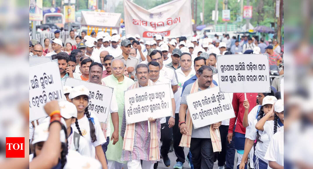 Bhubaneswar: Around 3,000 dropout children in Sambalpur district will be brought back to school as part of the ‘Aas School Jiba’ campaign, with Union education minister Dharmendra Pradhan attending an awareness drive on Sunday. He described the campaign as a commendable initiative of the state govt to connect children with education and skill development.Addressing a gathering, Pradhan said that bringing every child to school and providing education in their mother tongue are the core objectives of the National Education Policy (NEP). “Our govt is working to reduce dropout rates, increase enrolment, improve school infrastructure and enhance literacy levels. Campaigns like Aas School Jiba will play a crucial role in achieving the goals,” Pradhan said.The minister pointed out that Sambalpur fares better than many districts in terms of school enrolment, yet nearly 3,000 children remain outside the education system. “The responsibility of ensuring every child’s education does not rest only with the govt but also with parents, teachers and the community,” he added.Highlighting the ministry’s Ullas — Nav Bharat Literacy Programme 2025, Pradhan said efforts are underway to make unlettered people aged above 15 years literate. He also stressed the importance of the ‘Vocal for Local’ initiative, encouraging citizens to promote indigenous products. “Educating children, making the illiterate literate, and supporting local products will help build a stronger and more developed India. Today’s students will be the leaders who realise the dream of a developed nation,” he said.State panchayati raj minister Rabi Naik, along with students, teachers, parents, education officers and school management committee members, also joined the rally.