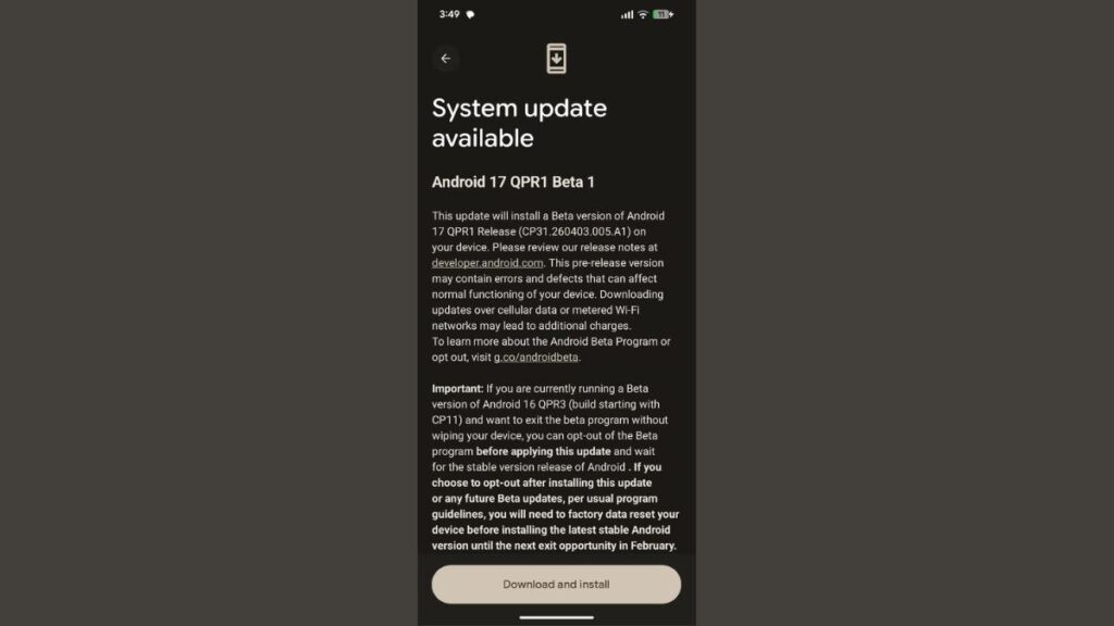 Notably, users currently running the Android 17 beta can opt out by skipping the QPR1 beta and reverting to the stable channel without losing data.