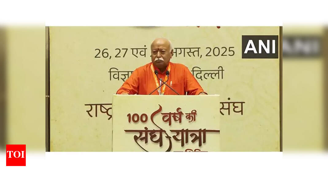 New Delhi: Casting the Rashtriya Swayamsevak Sangh‘s centenary as both vindication of its importance and presentation of a fresh challenge, RSS chief Mohan Bhagwat on Tuesday said the organisation had endured a century of neglect, hostility and bans to emerge as a force of acceptance, and used the occasion to define Hindu identity as inclusive and rooted, not in territory but in devotion to Bharat Mata and the traditions of ancestors.Speaking at “100 Years Journey of RSS: New Horizons” at Vigyan Bhawan, Bhagwat said RSS’s founder Keshav Baliram Hedgewar had participated in all four streams of the freedom struggle – revolutionary, political, social reform and spiritual renaissance – and was remembered as a “born patriot.” Hedgewar, he noted, had concluded that leaders, policies and parties may be useful but are secondary to the objective of society’s transformation.Tracing the Sangh’s path, the Sarsanghchalak said, “there is much discourse regarding the Sangh… the available information is limited and often inauthentic. It is imperative to present the truth and accurate details,” urging people to form a view about the organisation “based on facts and not on perception”.As he traced Sangh’s journey, a micro movie showed a 3,000-strong RSS contingent participating in the Republic Day parade of 1963 at the instance of Nehru, “the very same person”, the commentary emphasised, “who had banned the organisation citing the assassination of Gandhi.He said that Sangh believed in bringing people together and welding them into a team for the pursuit of building India as a powerful nation. “Coming together is beginning, staying together is progress and working together is success,” said Bhagwat as he detailed the process of sculpting an individual into the “new man” of RSS’s conception, right since their initial days in an RSS Shakha.Despite bans, attacks and vilification, the Sangh had spread from small beginnings to every corner of the country, he said, because of the selfless dedication of swayamsevaks. With no paid staff and no external funding, the organisation continued to grow only on the basis of voluntary efforts.The gathering reflected the wider audience the Sangh seeks to engage, drawing diplomats from over two dozen embassies, including major powers and neighbours; members of think tanks such as ORF, Infinity Foundation, HSS and TEDx India; and corporate representatives. The lecture series will continue till Thursday with Bhagwat scheduled to engage with Indian and international voices.