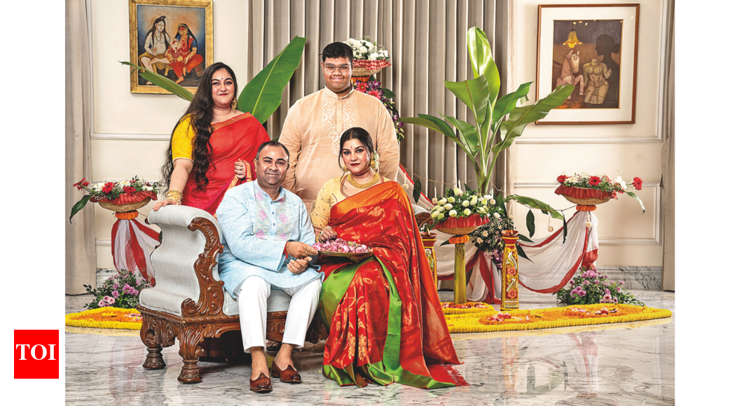 Durga Puja is a celebration of tradition and togetherness. Anjali Jewellers owners Annargha Uuttiya Chowdhury, his wife Baijyantti, daughter Anjalee, and son Amitabha cherish it as a time to reconnect at their ancestral home. We spent an afternoon with the family to know what Pujo means to them.What does Maa Durga signify for your family?Annargha: The goddess symbolises strength and endurance. Her arrival brings joy, and though her departure brings tears, she leaves us with hope, blessings, and love, as we await her return.Baijyantti: I’m grateful to Maa Durga for guiding me through life’s highs and lows. Her homecoming brings hope, resilience, and renewal. Though she must leave, she promises to return, and we wait joyfully —Asche bochor abar hobe!Anjalee: For me, Durga Puja is not just about Maa’s victory, but also a celebration of the strength and spirit that every woman carries within her. Her spirit resides in each woman.Amitabha: Maa’s homecoming is pure joy. I love it when the entire family gets together and join in the festivities. The energy is so infectious that even the quietest hearts join in.
