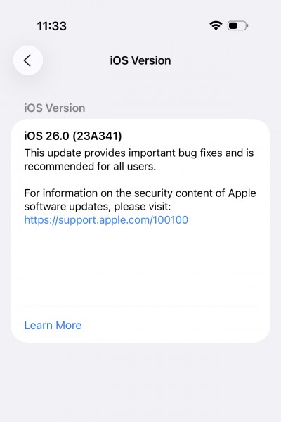 iOS 26.0 (23A341) update screen