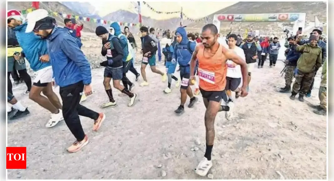 DEHRADUN: At a construction site in Delhi, Rohit Kumar can sometimes be spotted running with bricks on his back. A resident of Bihar’s Khagaria, he may look like another labourer battling at a work site. But Kumar is also a marathon runner.The 32-year-old has secured podium finishes in at least seven marathons, including Lucknow, Dehradun and Prayagraj. His latest feat – finishing second in a gruelling high-altitude marathon in Spiti in Aug – even took the Indian Army by surprise.Commending his effort, Army’s Uttar Bharat posted on X: “At just 32, Rohit Kumar, a daily wage labourer from Delhi, doesn’t chase records or sponsorships. He runs to survive, fuelled by necessity, not luxury… No coach, no fancy gear. Just raw resolve.”Kumar said he has run in over 100 marathons, averaging five a month. “Now I am focusing on quality runs. That is why I participated in the high-altitude Spiti marathon organised by the Army, where I finished second in the 77 km Kunzum La-Kaza Ultra under the Surya Spiti Challenge,” he told TOI.His timing in the male open category was 7:48:52, close to winner Nikhil Singh’s 7:42:44. Impressed, the Army has offered him support for future runs. “I have been invited to another high-altitude marathon in Tawang, Arunachal Pradesh. They assured me of covering my travel, food and lodging. Hopefully, I will get another podium finish,” he added.Kumar’s story could have been different. After enrolling in a medical course in Russia, he spent two years there before money ran out & his farmer-parents called him back in 2017. Struggling to find jobs back home, he took work at construction sites.In 2020, stuck indoors during Covid, he began watching videos of global marathons in New York, London and Tokyo. Inspired, he started training, squeezing time between hard labour shifts. His day begins at 4.30am with running, followed by construction work from 8 am to 5 pm, where carrying loads up floors doubles as endurance training. In the evening, he swims for an hour before cooking dinner and resting.Kumar now dreams of representing India in the Triathlon at the 2028 LA Olympics. “I spend Rs 20,000 a month on diet and equipment from my Rs 30,000 earnings to realise this dream,” he said.