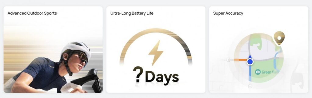 If you head over to the launch countdown page, you will find a confirmation of that and a bit more. The page highlights three things: advanced outdoor sports, “ultra-long” battery life and positioning accuracy.