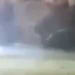 It’s not clear from the video, which has no sound, when the shots were fired.