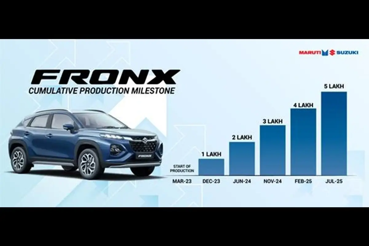 Maruti Suzuki’s Compact SUV, the FRONX achieves 5 lakh cumulative production milestone. Since its launch in 2023, FRONX has garnered customer appreciation for its design and performance. It was the highest exported passenger vehicle in the industry in FY 2024-25 and was among the top 10 selling vehicles in the domestic market during the period.