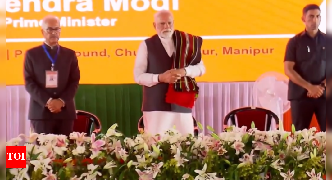 NEW DELHI: Prime Minister Narendra Modi on Saturday paid his first visit to Manipur, two years after ethnic violence left the state in shamble, leaving 260 dead. He inaugurated developmental projects worth Rs 7,300 crore at Kuki-dominated Churachandpur.“There is ‘Mani’ in the name of Manipur. It is that ‘Mani’ which is going to make the entire Northeast shine in the future. The Government of India has been trying to take Manipur forward in the path of development. A while ago, the foundation stone of projects worth around Rs 7,000 crore was laid here,” he said.“Centre has increased budget allocation for railway, road connectivity projects in Manipur,” he added. He further urged all outfits to “embark on path of peace to secure your children’s future.”PM Modi was received at the Imphal airport by governor Ajay Kumar Bhalla and chief secretary Puneet Kumar Goel.Ahead of the prime minister’s visit, security was significantly tightened in Imphal and Churachandpur. Large contingents of state and central forces have been deployed around Kangla Fort in Imphal and Peace Ground in Churachandpur, the key venues of his rallies.His visit takes place against the backdrop of persistent opposition criticism over his absence from Manipur, where ethnic clashes between the Kuki and Meitei communities since May 2023 have claimed more than 260 lives and displaced thousands.