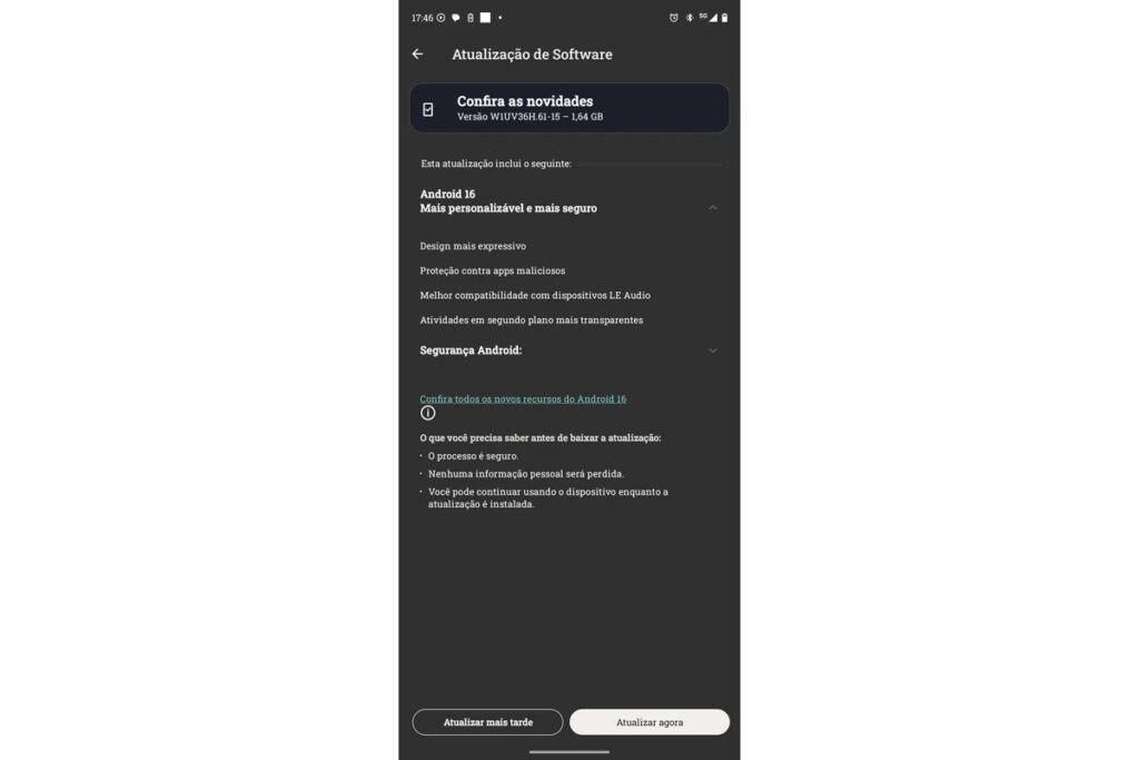 It arrives over-the-air with firmware version W1UV36H.61-15 as a 1.64GB download. As always with such updates, the rollout is most likely staged, so it might take a few days for it to reach all of the Edge 50 Ultra units in Brazil.