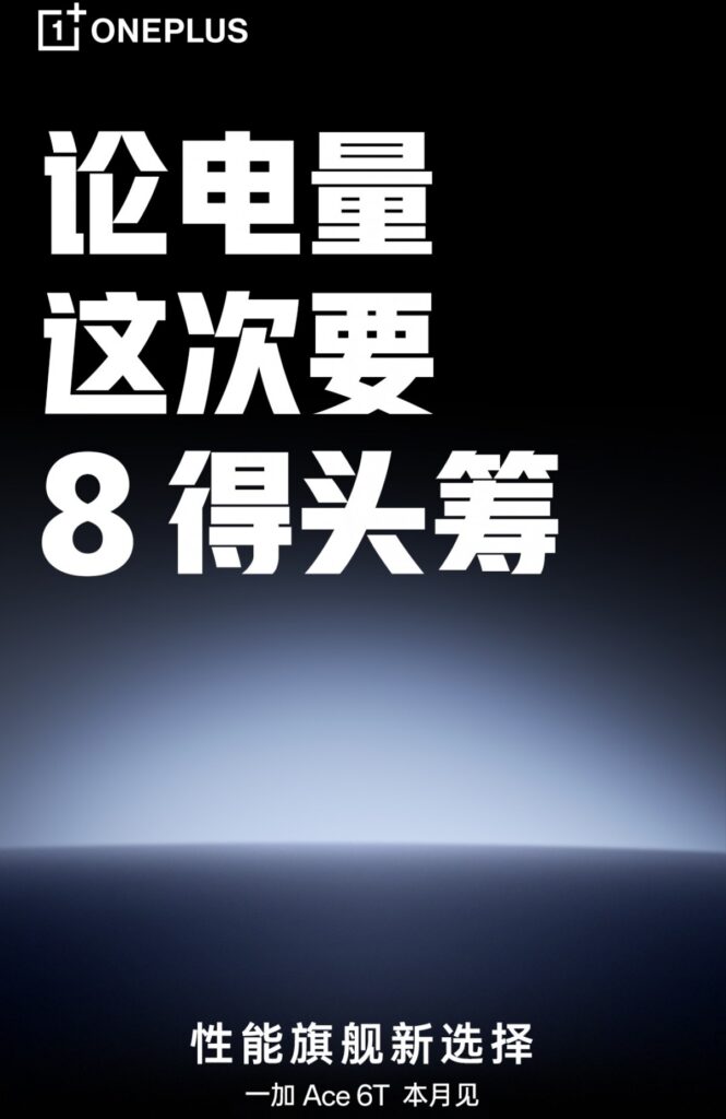 The company has now released another new teaser that hints at the phone’s battery capacity. As per a poster shared by OnePlus on Weibo, the Ace 6T could pack an 8,000mAh battery.
