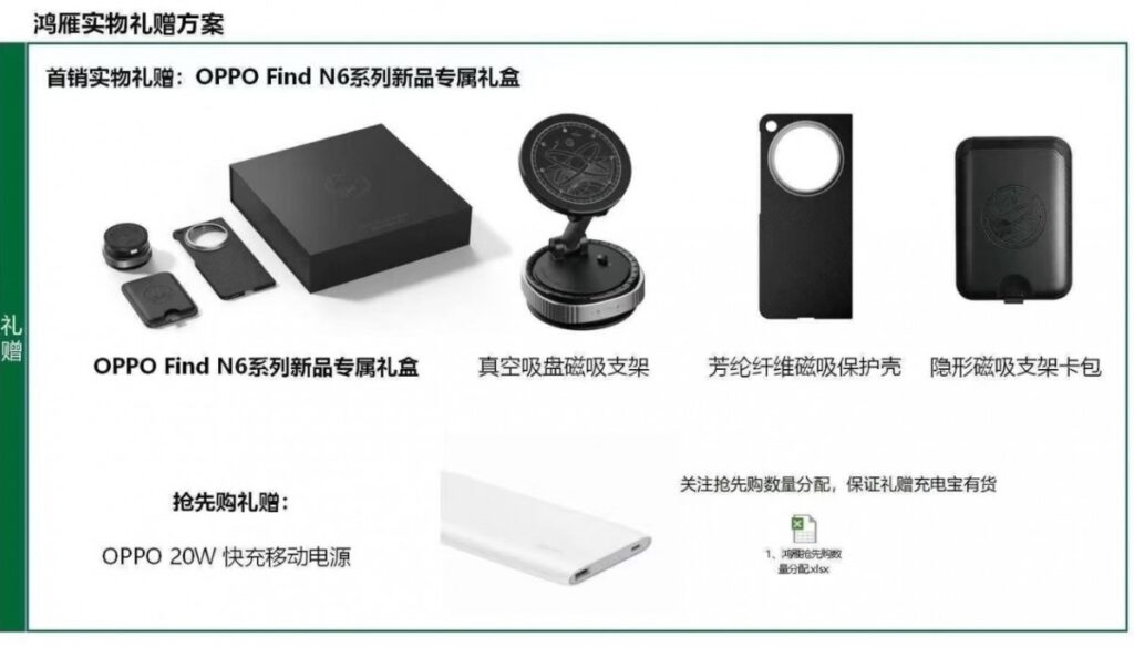Oppo is launching the Find N6 very soon, and ahead of that, today in China the purported contents of the Find N6 ‘gift box’ (machine translated from Chinese) got outed. We assume not every Find N6 box will be outfitted with all this stuff, perhaps only those who pre-order will get the contents shown here, or this could be some special edition.