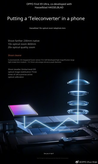 Oppo Find series product manager Zhuo Shijie has confirmed that the Find X9 Ultra will feature a Hasselblad-branded periscope telephoto camera with 10x optical zoom.