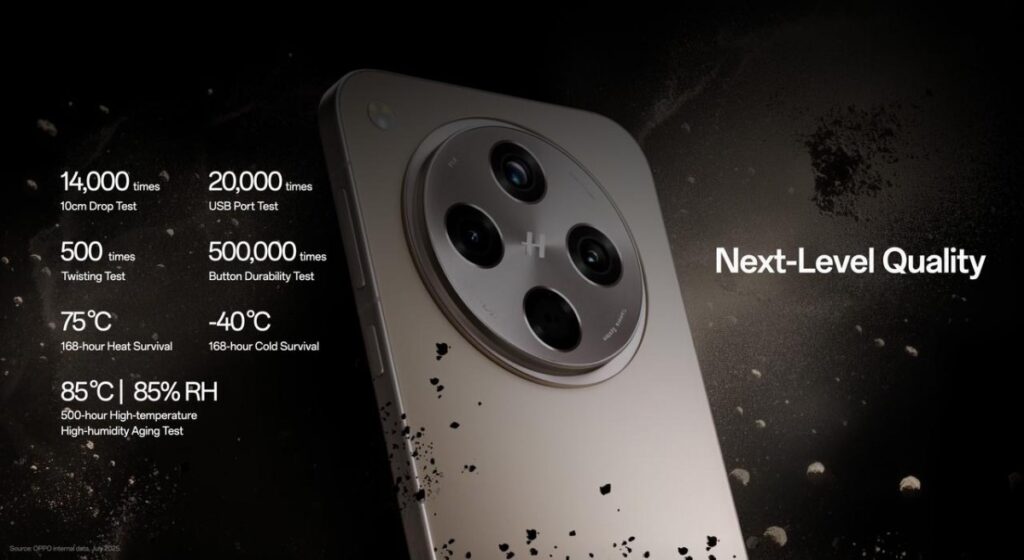 On the hardware front, Oppo has developed materials like Ultra-High-Strength Steel and AM04 aerospace-grade aluminum alloy. It also introduced structural solutions like the Armour Shield. All of that improves the resilience of Oppo phones against the realities of daily use like falls, scratches, extreme temperatures, button and USB port usage.