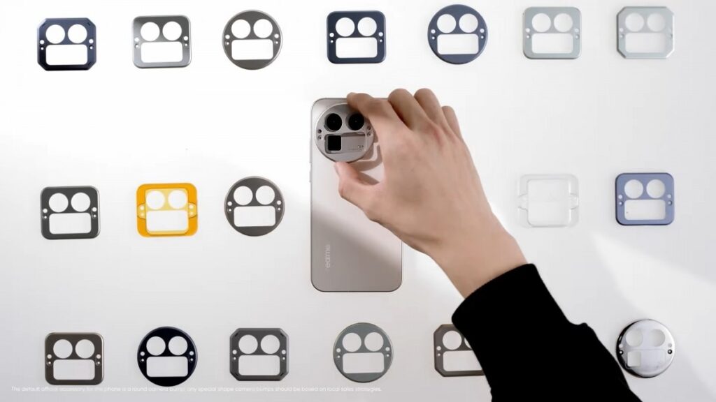 In the build-up to the international launch, Realme posted this teaser, which shows off the various first-party bump designs. There are three main shapes – two rectangles (one with rounded corners and one with cropped corners) and one circle.