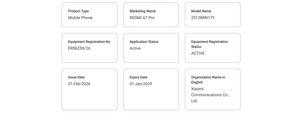 Redmi is working on the A7 Pro, which has just been certified for sale in the UAE by TDRA. This certification has revealed the name, as well as the phone’s model number: 25128RN17Y.
