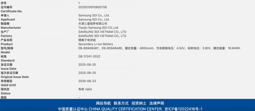 While there have been a few rumors hoping for at least a 10% increase in capacity from the S25 Ultra‘s 5,000 mAh to 5,500 mAh, other rumors shot down the idea and they were apparently right. According to a new certification by China’s Quality Certification Center, the S26 Ultra’s battery has a rated capacity of 4,855 mAh.
