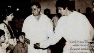 Bollywood legend Amitabh Bachchan, known for his active presence on social media, often treats his followers to rare glimpses from his glorious career and personal moments. Back in 2017, the megastar shared a special throwback photograph that has since become one of the most cherished memories for fans. Captioning the post, he wrote, “T 2491 – And that wide eyed little fellow is the Superstar of the day today! Ranbir Kapoor .. !! what an actor !!”The heartwarming photo featured a young Ranbir Kapoor with his sister Riddhima Kapoor Sahni, holding the hand of their mother Neetu Kapoor, while speaking to Amitabh Bachchan. Adding more to the nostalgia, the late veteran actor Shashi Kapoor was also seen in the frame.