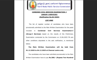 TNPSC Group 1 provisional list released 2025: The Tamil Nadu Public Service Commission (TNPSC) has released the provisional list of candidates admitted to the Main Written Examination for the Combined Civil Services Examination-I (Group-I Services) 2025, following the Preliminary Examination conducted on June 15, 2025 (FN). The announcement marks a crucial milestone for aspirants seeking top administrative positions in the state.The Main Written Examination is scheduled to be held from December 1 to December 4, 2025, exclusively at the Chennai examination centre. Candidates are advised to note that this examination is strictly in-person at the designated venue, and no alternative centres will be provided.