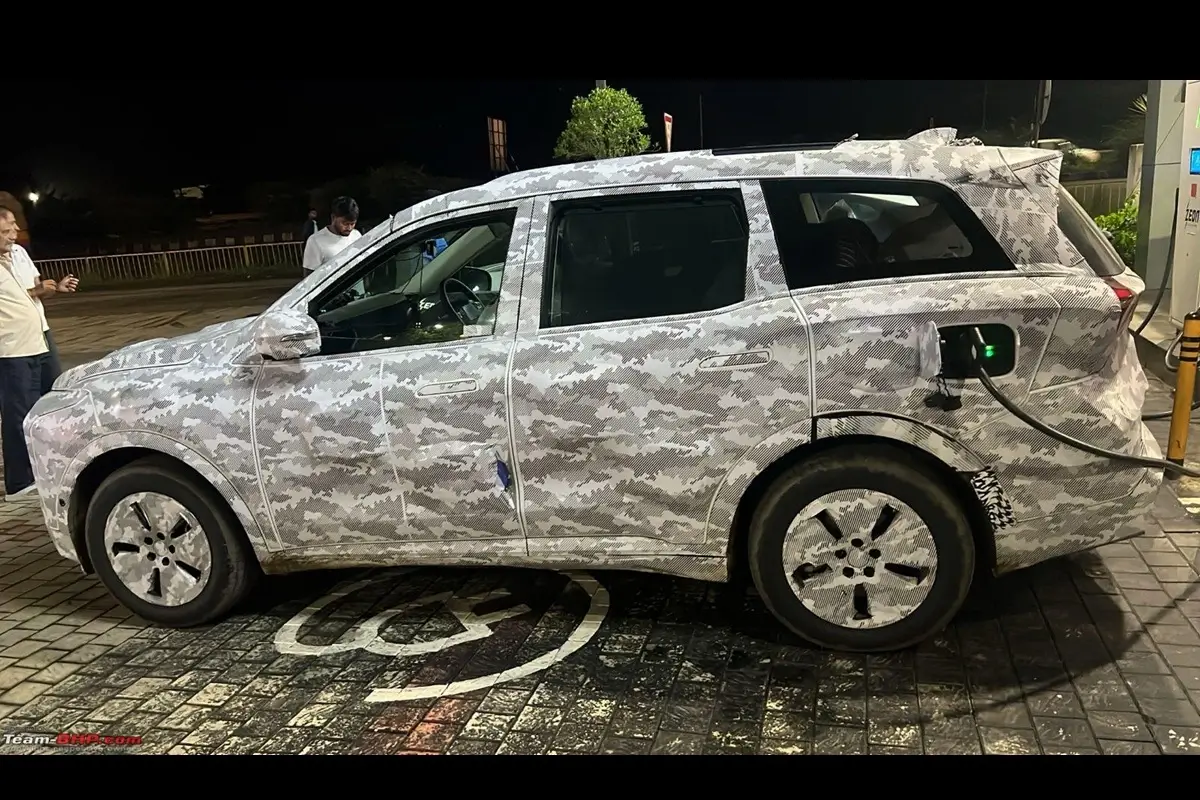 Mahindra & Mahindra is all set to expand its born-electric SUV range with the new XEV 7e SUV in the coming months. This electric SUV is slated to debut in late 2025, followed by its market launch early next year. The Mahindra XEV 7e is essentially a 7-seater version of the XEV 9e coupe SUV, which will be designed to appeal family EV buyers. Recently, a heavily camouflaged test mule of the SUV was caught on camera at a charging station.