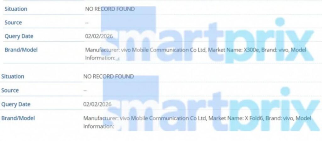 The vivo X Fold6 was also spotted in the database alongside the X300e. Again, no new information is available regarding the upcoming foldable from vivo. Past rumors suggest that the foldable could be equipped with the Snapdragon 8 Gen 5 SoC and a 200MP rear camera. It is expected to debut between April and June 2026.